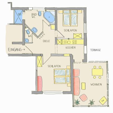 80qm² | bis zu 4 Personen + optional Schlafcouch
